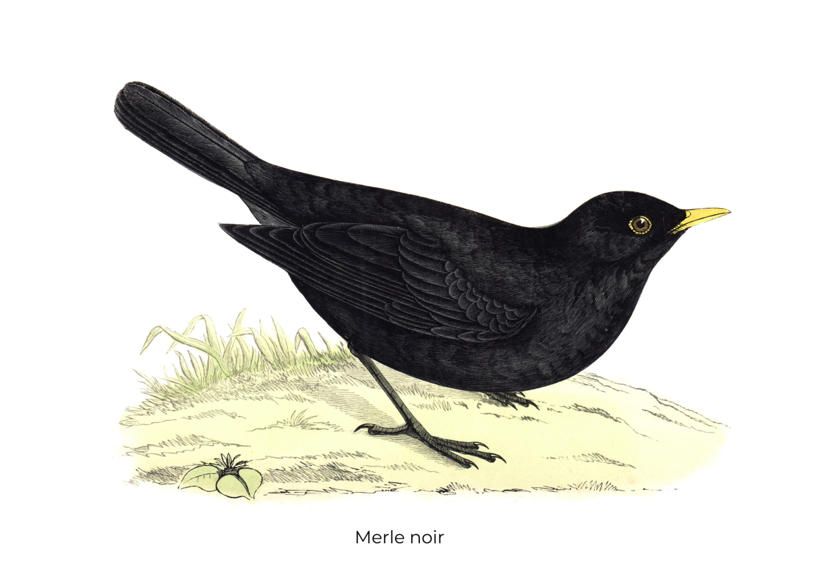 Voilà bien le plus répandu de tous. Facile à reconnaître à son plumage noir de jais, (brun chez la femelle), son œil cerclé et son bec jaune. Tantôt tapi au plus épais des bois, tantôt sautillant dans nos jardins et pelouses de parc, quartiers résidentiels, jusque dans nos centres villes, le Merle est certainement, avec l’Etourneau et le Moineau l’un des oiseaux qui a su le mieux tirer parti des faveurs humaines.